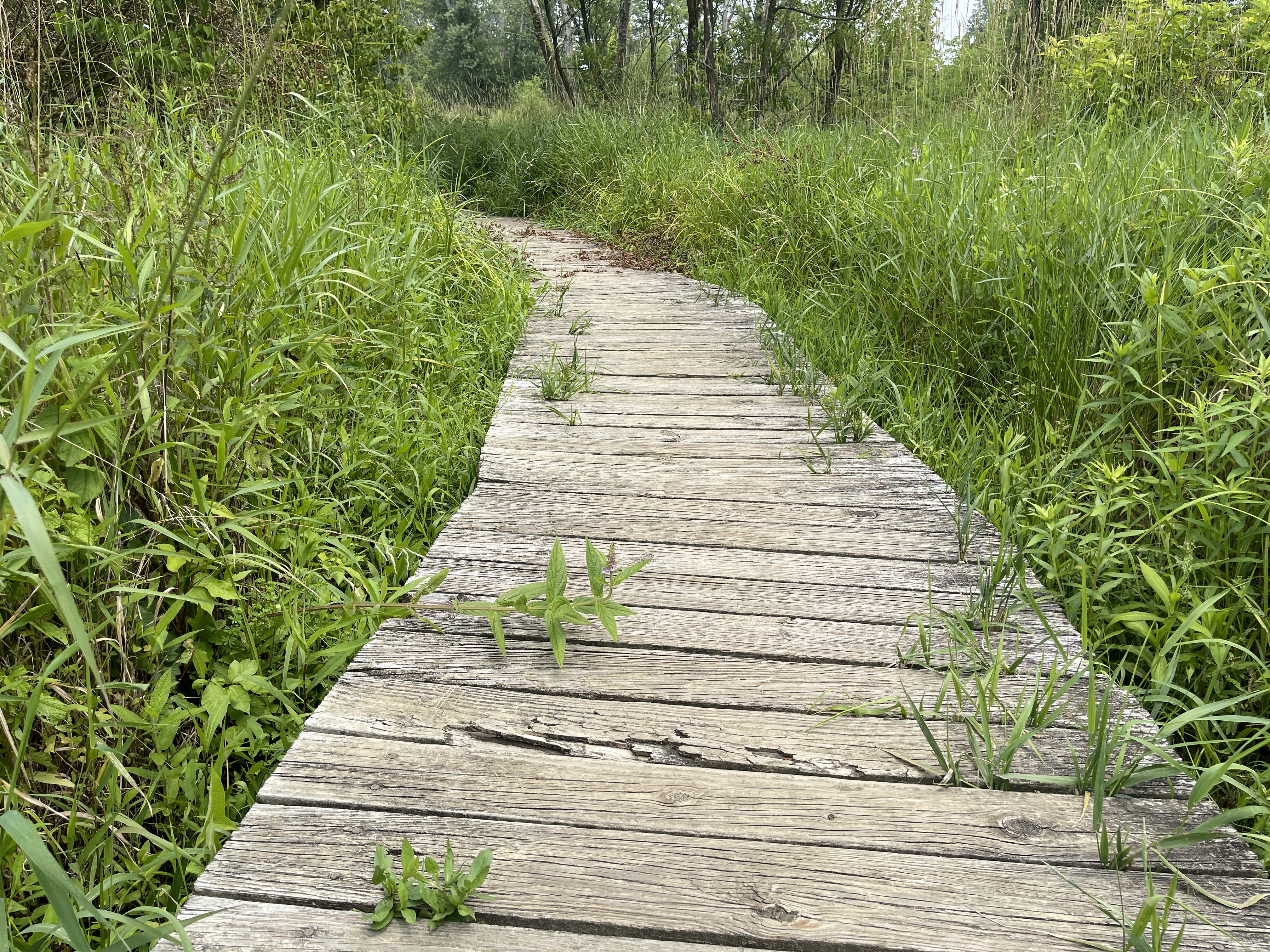 Foot bridge through the grasses.
