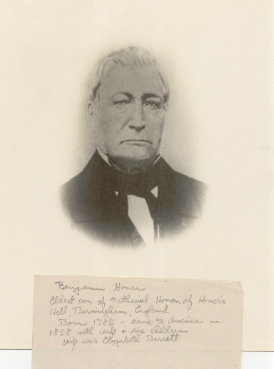 Homer Tree Son of Nathaniel Homer and Sarah Talbot Note: He brought his family from Birmingham, England, to America in 1829. Born: 1781 Died: 1850? Married: Elizabeth Barrett (the first cousin of the poet EB) on 4 Sep 1809. Children (there were six children): Caroline Homer (b: 18 Aug 1821 in Birmingham) Thomas Homer (b: 29 Mar 1829 in Philadelphia) |